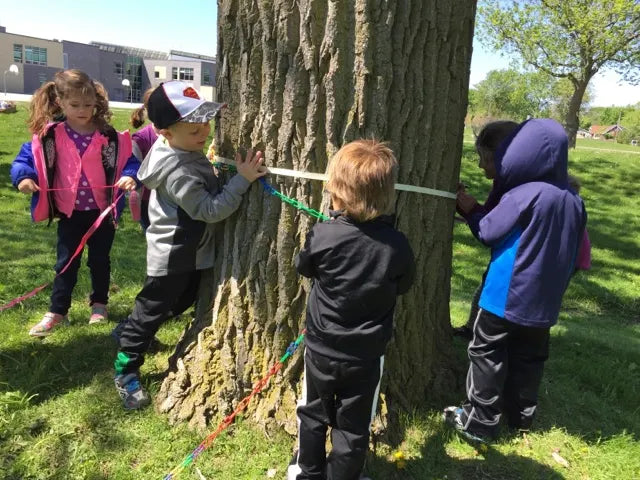 Head outside with your learners and bring along some measuring tools: ribbons, string, measuring tapes or even yarn! Invite children to wrap the tools around different tree trunks and discover: