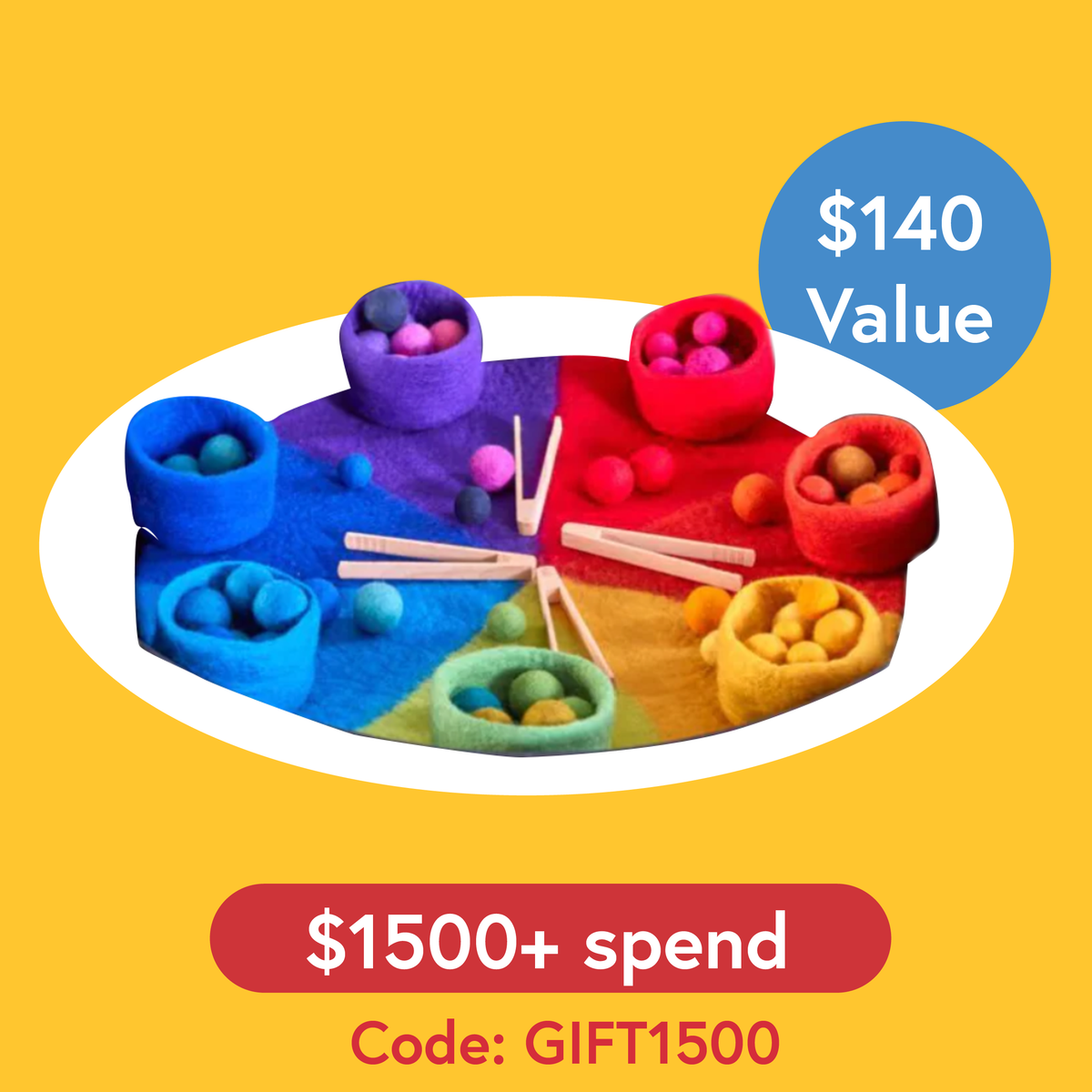 FREE:Felt Rainbow Mat,Rainbow Felt Bowls and Balls, and Wooden Tweezers by Cosy
