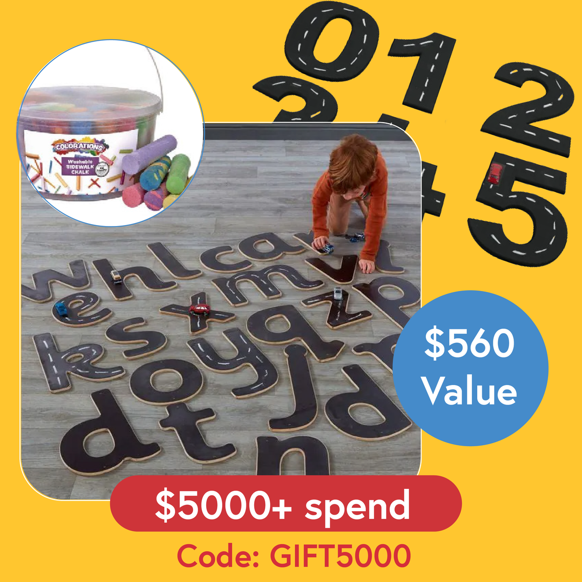 FREE: Giant Outdoor Chalkboard Alphabet and Number Roadways by Cosy and Washable Sidewalk Chalk by Colorations