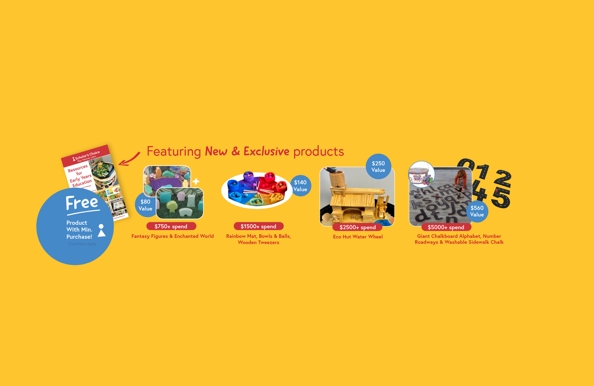 **Special SC Offer: Get FREE Exclusive Products with a minimum purchase of required tier spend, before taxes. 1 use per customer. Offer valid for a limited time or while supplies last. Free product is subject to change. Add the free product to your cart and apply corresponding coupon codes at checkout for free gifts. Standard shipping policies do not apply to free items. Not in conjunction with any other offer, can not be combined with any other coupon or special offer, and can not be applied to past purchases. Not valid on the purchase of gift cards. All orders with furniture and large play equipment will only ship once, when all products are available to ship. Scholar’s Choice reserves the right to change or cancel this offer at any time or change any part of any promotion.
